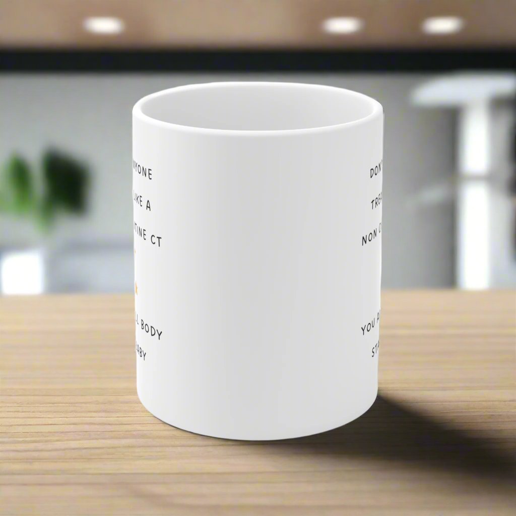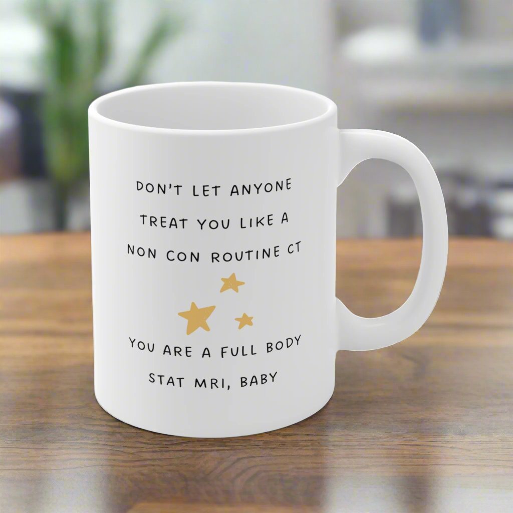 Unique gift for healthcare workers, 11 oz ceramic mug with rounded corners and C-handle. Lead and BPA-free, microwave and dishwasher safe. Perfect for colleagues and friends in the medical field.